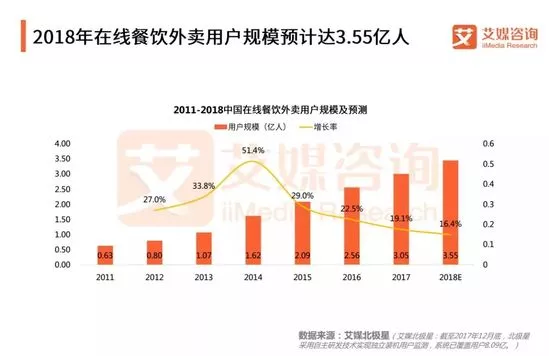 2018年在線餐飲外賣用戶規模預計達3.55億人