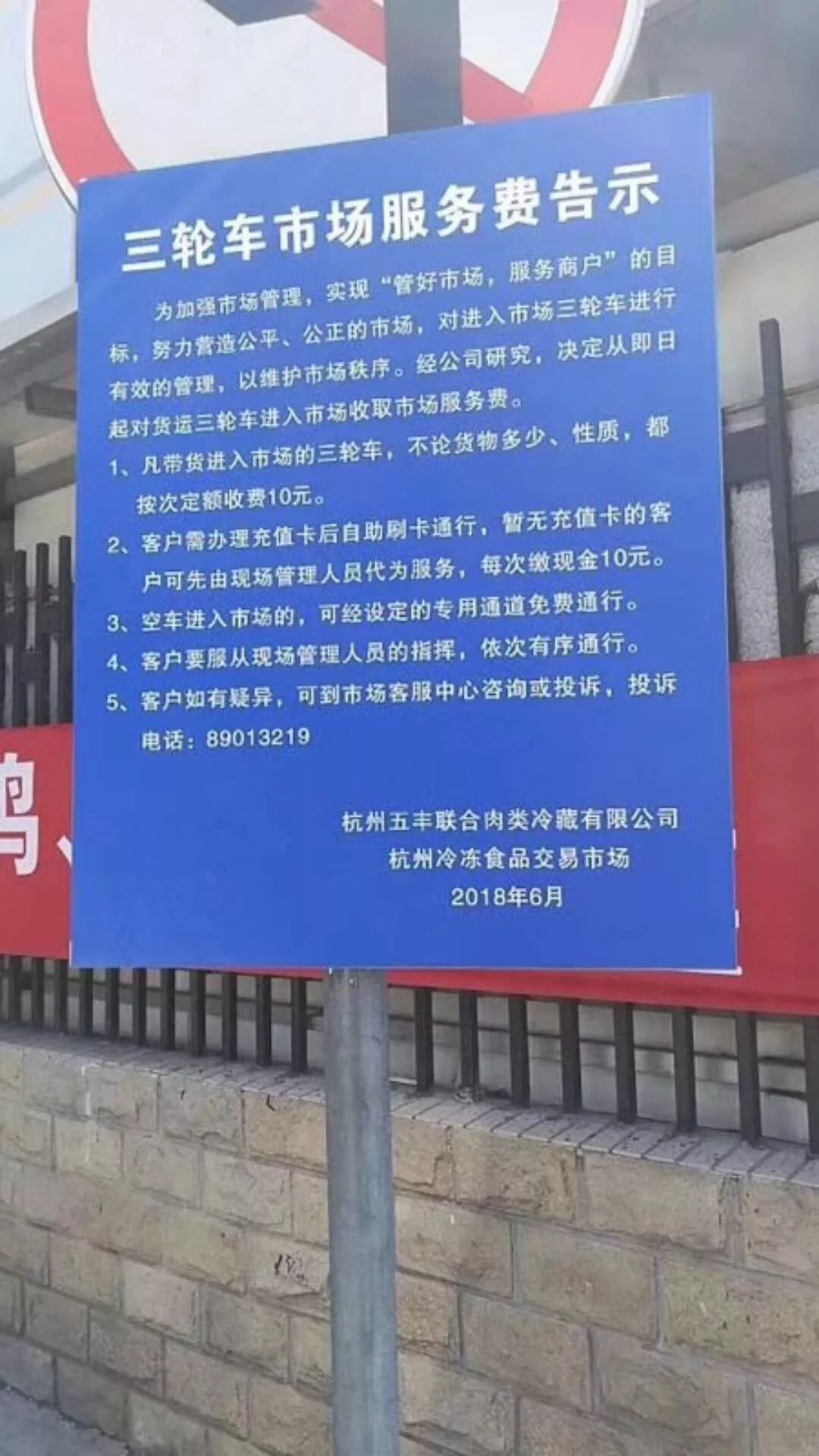 6月初,杭州五豐聯(lián)合肉類冷藏有限公司、杭州冷凍食品交易市場(chǎng)的一則“三輪車市場(chǎng)服務(wù)費(fèi)”告示讓在經(jīng)銷商群體中引起了軒然大波!原本忙于經(jīng)營(yíng)的經(jīng)銷商們慌了神:按照告示上的收費(fèi)標(biāo)準(zhǔn),三輪車進(jìn)一次收費(fèi)10元,生意好的時(shí)候一天要進(jìn)上百次,真的要一天給市場(chǎng)交1000元“三輪車市場(chǎng)服務(wù)費(fèi)”嗎?