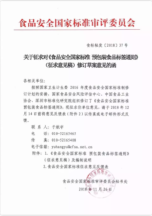 近日,食品安全國家標準審評委員會對外發布的關于征求對《食品安全國家標準 預包裝食品標簽通則》(征求意見稿)修訂草案意見的函,根據征求意見稿,食品名稱中提及的配料或成分應標示該種配料或成分的添加量或在成品中的含量。