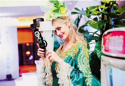 模特向消費者展示祐康冷飲新產(chǎn)品