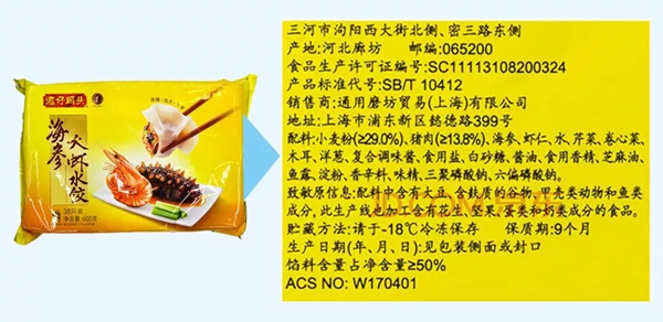 “食品名稱中提及的某種配料或成分而未在標(biāo)簽上特別強調(diào),不需要標(biāo)示該種配料或成分的添加量或在成品中的含量。”該工作人員說,海參大蝦水餃只是食品名稱,其圖案及文字不是標(biāo)和蝦仁的含量。而且海參大蝦并不是特別強調(diào),只是表述產(chǎn)品真實屬性的名簽中強調(diào)的內(nèi)容,因此可以不用標(biāo)注海參稱。