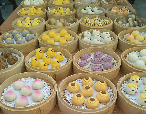 在展會上,火燒饃、卡通面點、蒸餃等米面產品也吸引了眾多觀展人員關注。
