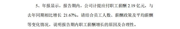 (1)公司銷售收入及產量增加,銷售、生產及行政后勤人員增加,對應工資增加。具體包括:銷售收入全年增長18.24%,銷售及行政后勤人員平均每月增加177人次,對應工資總額增加596.73萬元,增長6.35%;產量全年增長16.17%,生產人員平均每月增加67人次,對應工資總額增加774.37萬元,增長13.33%。