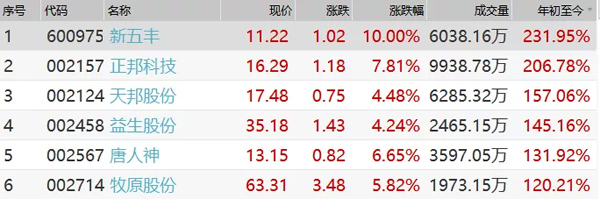 △部分養豬股今年來的市場表現