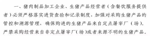 第一,對生豬產(chǎn)品來源,做好溯源,必須來源于定點屠宰廠。
