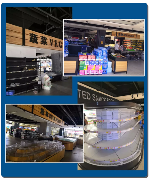冷食傳媒記者環視一周發現,除了個別飲料、糧油、日用貨架,其他果蔬、散裝、百貨已經搬空。一旁的工作人員,時不時會提醒消費者“已經不再營業”。