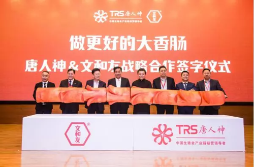 去年3月,唐人神集團以7000萬元入股文和友集團旗下新公司文和唐,共同運作長沙大香腸項目,文和友?老長沙大香腸改名為“文和友?唐人神大香腸”。這對于長沙大香腸來說是如虎添翼。