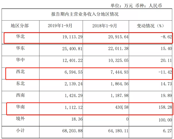 整體來看,華南地區增幅最大,為158.28%,但該地區去年同期的基數最小。而華北地區和西北地區還出現了負增長。