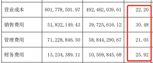 此外,報告期內,惠發食品的營業成本、銷售費用、管理費用、財務費用增幅都比較大,都在20%-30%之間。