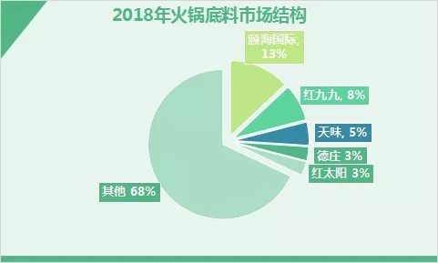 按照2018年的市占率看,排名前三的是頤海國(guó)際、紅九九、天味。頤海國(guó)際抱著海底撈的大腿,正式成為了中高端火鍋底料之王。