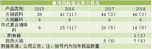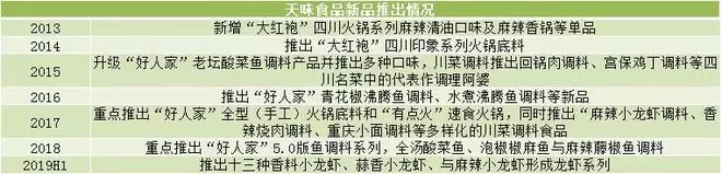 僅對(duì)比火鍋底料這一塊,頤海國(guó)際推出的新品要更多一些,天味食品在川菜調(diào)味料上的創(chuàng)新也是不容忽視的。