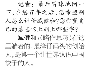 我至今記得采訪的最后一個問題,當時了解到臧阿姨喜歡逛墓地、看墓志銘,就冒昧地問了她一個問題,百年之后您希望墓志銘上寫上什么字呢?她略作思考說:在這里躺著的,是灣仔碼頭的創始人,是第一個讓世界認識中國水餃的人。