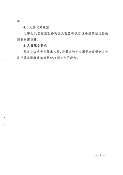 在人員配備方面:要求配備2-3名專業技術人員,應具備獨立應用熒光定量PCR方法開展非洲豬瘟病毒核酸檢測工作的能力。