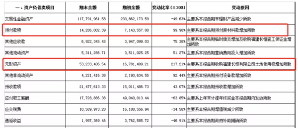 從上圖可知,海欣資產負債增幅最大的兩項是無形資產和預付款項。