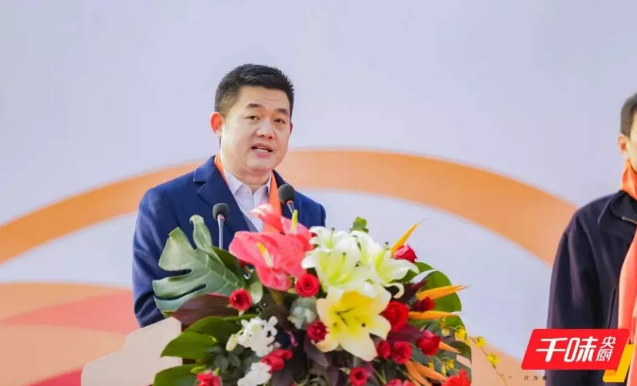 ▲千味央廚董事長孫劍宣布:新鄉千味央廚食品有限公司一期車間正式開工投產