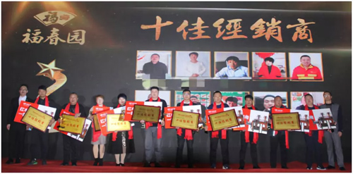 會議中,福春園為2018年度優(yōu)秀經銷商進行了盛大的頒獎儀式,給他們頒發(fā)了獎牌、獎杯以及獎品。